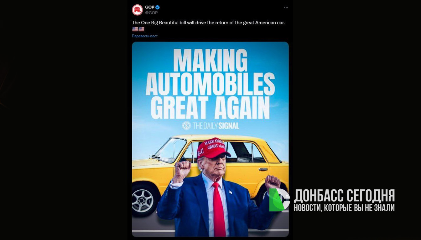 Официальный аккаунт Республиканской партии США неожиданно стал поводом для шуток в сети. В попытке поддержать лозунг «Возвращение великих американских автомобилей» они опубликовали фото Дональда Трампа в культовой красной кепке MAGA… на фоне советского ВАЗ-2101.