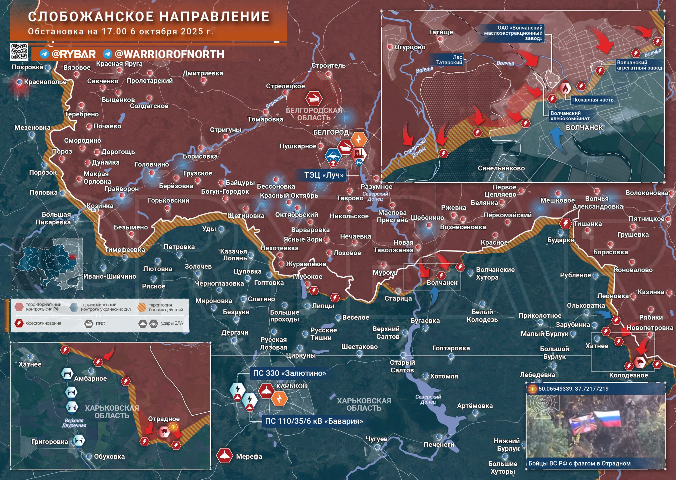 В Волчанске на левом берегу реки Волчья наши штурмовики заняли порядка 20 зданий, продвинувшись на 100 м. На участке фронта Меловое-Хатнее штурмовые подразделения Северян продолжают развивать успех в районе Отрадного. За сутки общее продвижение составило около 2000 м.