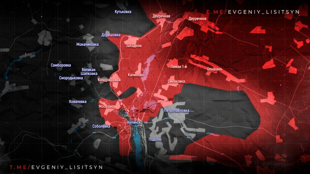 На Купянском направлении ВС РФ зачищают улицы в южной части города. ВСУ контратакуют западную часть Купянска с нескольких направлений, а также пытаются заводить в него ДРГ, которые практически целиком уничтожаются дронами. Ожесточённые бои идут вдоль восточного берега Оскола от Загрызово до Подолов. МО РФ сообщило об освобождении Двуречанского в районе Мелового – ВС РФ соединили плацдармы со стороны Хатнего-Амбарного и плацдарм в районе Тополей – Каменки.