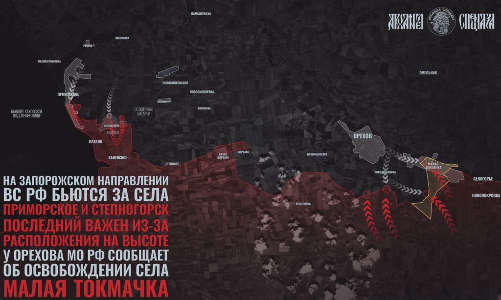 На Запорожском направлении тяжёлые бои за Приморское и Степногорск. ВС РФ достают дронами до ближнего тыла врага в районе Малокатериновки и бьют по логистике. Противник сопротивляется в районе Новоданиловки и стягивает подразделения спецназа для контратак в Малой Токмачке.