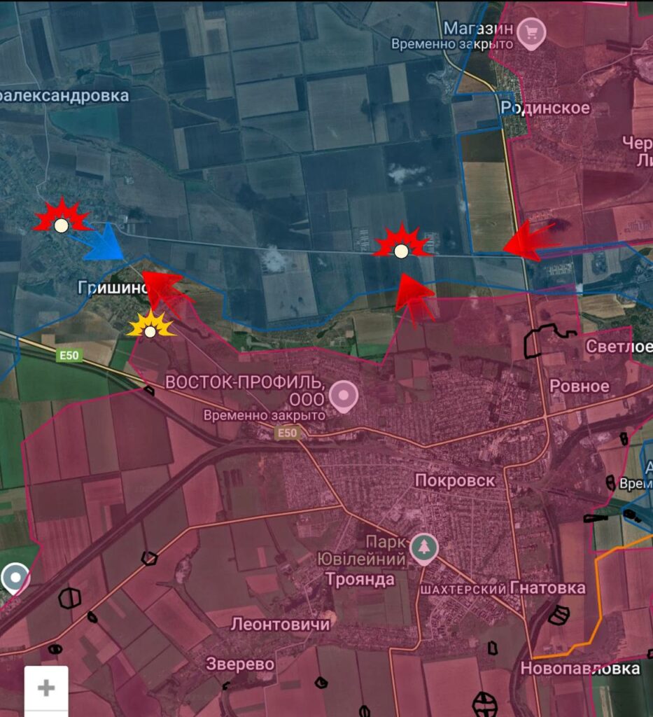 На Красноармейском фронте со стороны Молодецкого ВС РФ стараются зайти ДРГ в восточную часть Новоподгороднего. Пока не закрепляются, но восточная часть села становится серой зоной. В районе Гришино идет зачистка подконтрольной части села и позиционные бои по линии фронта. Сообщают, что в Димитрове ночью часть гарнизона ВСУ попыталась прорваться со стороны шахты «Центральная» через Светлое. Кому-то это удалось, но в самом Димитрове гарнизон врага сократился. В Светлом еще продолжаются бои. В районе Родинского, Софиевки и Торецкого тоже встречные столкновения. Появлялись сообщения, что в районе Нового Шахово ВС РФ взяли под контроль новые позиции.