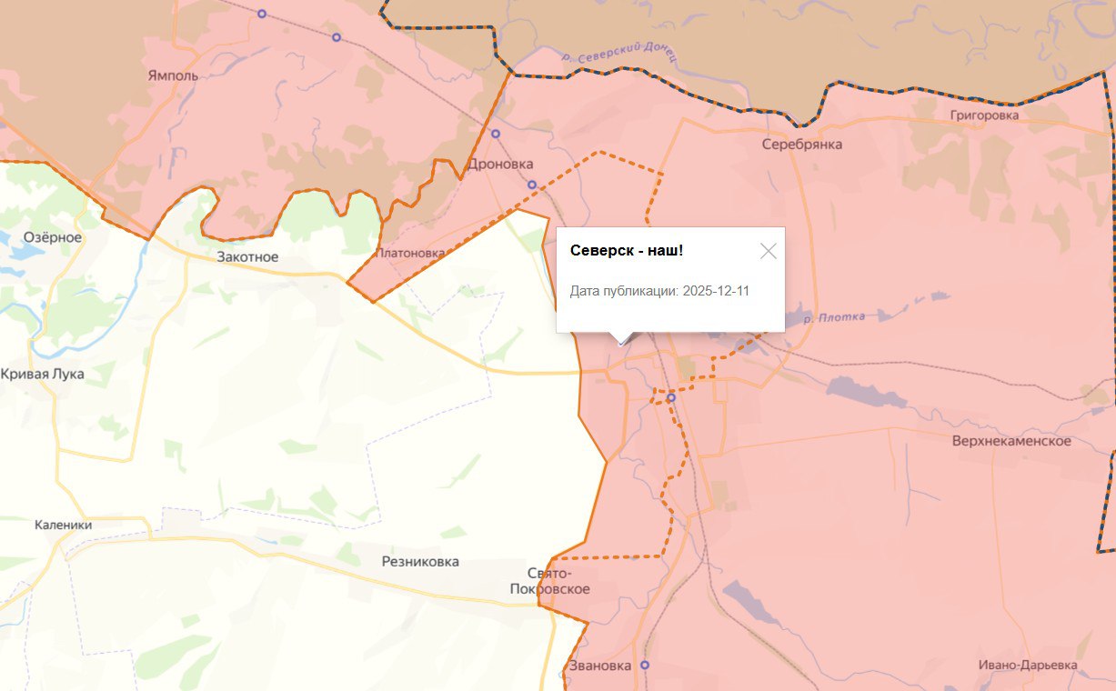 Подробная сводка боевой обстановки на 12 декабря: российские войска закрепляются под Славянском и Северском, идут тяжёлые бои на Купянском, Запорожском, Херсонском и Сумском направлениях. Карта продвижения и ключевые события суток.