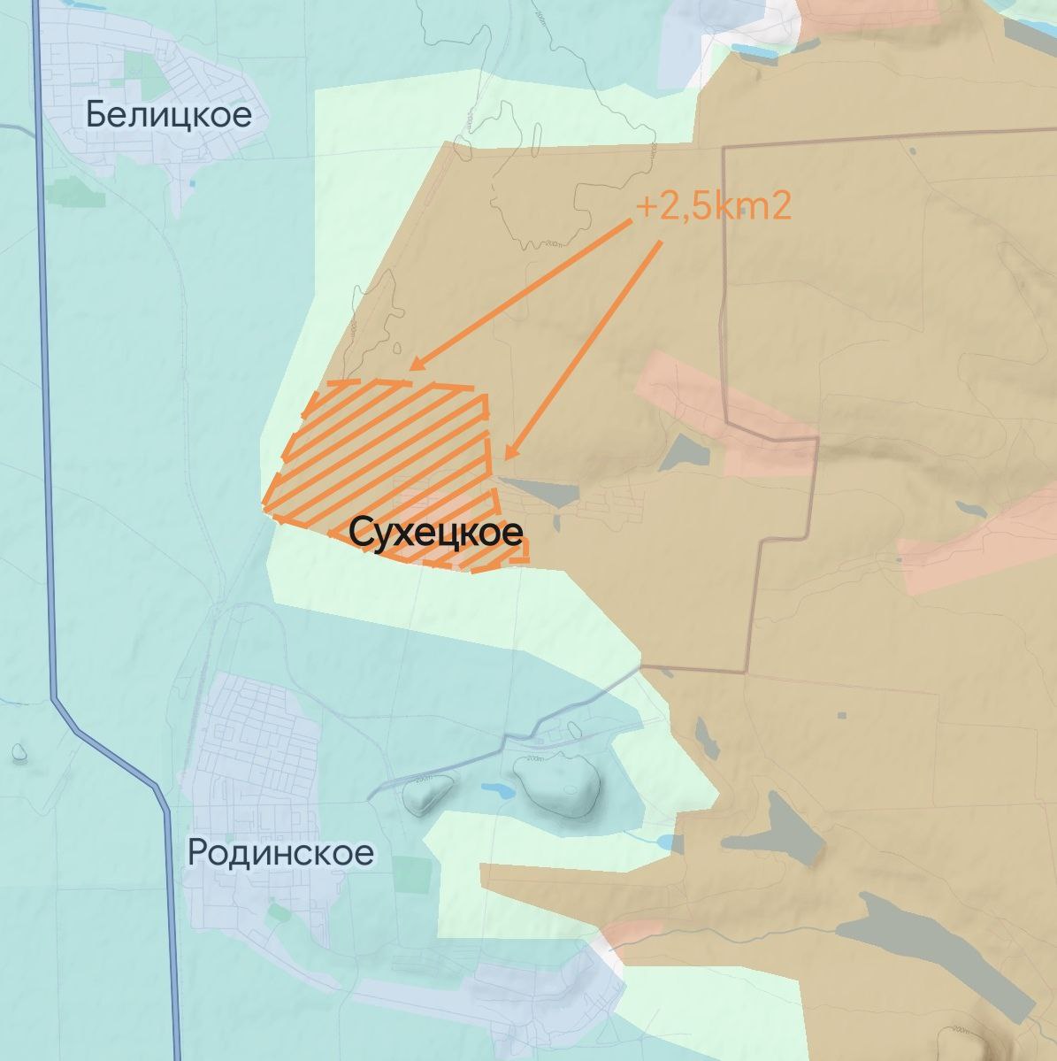 На Покровском фронте продолжаются упорные бои в районе Удачного и Котлино. В Леонтовичах ВС РФ теснят противника и обстреливают из артиллерии оборонительные рубежи в Троянде. Со стороны Новоукраинки ВС РФ штурмуют Чунишино. Восточнее Мирнограда сообщают о завершённой зачистке ГОКа, расположенного неподалёку от города. Севернее идут бои на окраинах Красного Лимана и Родинского. Часть территории севернее Сухецкого в серой зоне.
