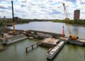 Этот шаг означает переход от работ по укреплению основания к восстановлению самой конструкции переправы. По мере монтажа последующих элементов над рекой будет постепенно формироваться новое покрытие. «ПЕРВЫЙ металлический блок пролётного строения» стал отправной точкой этого процесса.