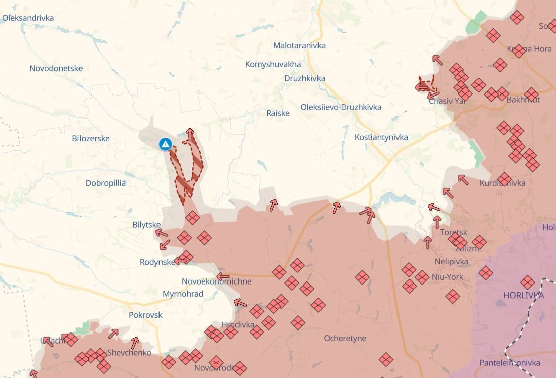 Как сообщают, расстояние между «клешнями» ВС РФ на Покровском направлении составляет менее 15 км