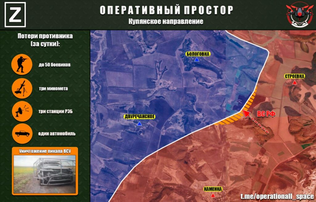 Российские войска удерживают позиции, регулярно отражают атаки и наносят ответные удары. Попытки противника не дали заметных результатов, тогда как наступательная активность российских сил в приграничных районах Харьковской области сохраняется.