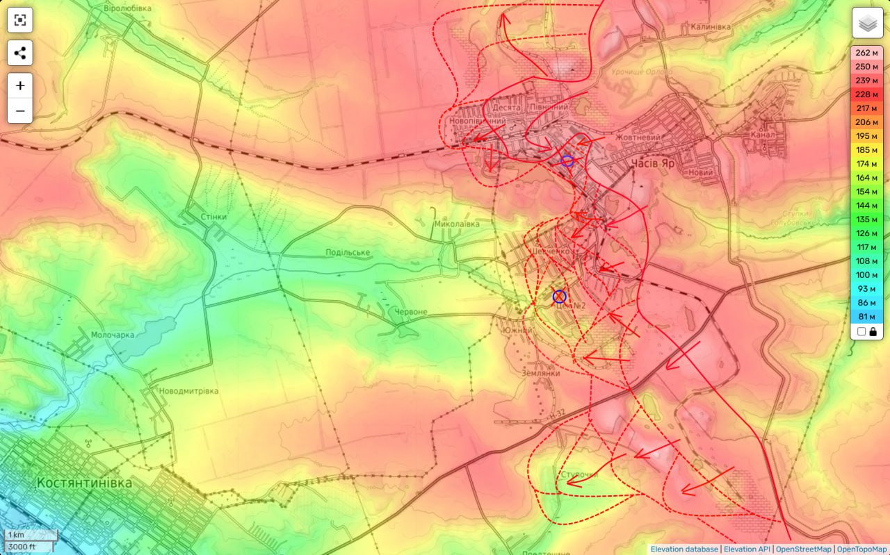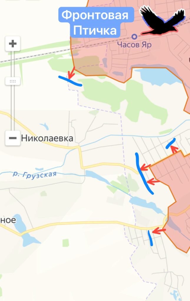 Так в районе Часов Яра — по направлению к Николаевке продвижение ВС РФ за сутки составило порядка 1 км.