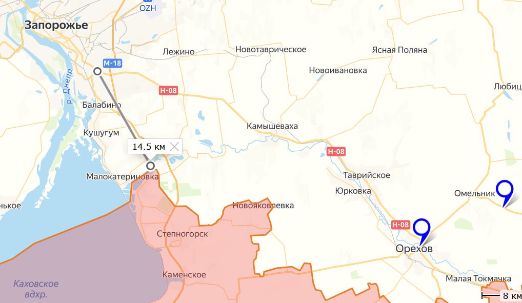 Подразделения группировки Днепр: На Ореховском направлении линия боевого соприкосновения без изменений. Идут позиционные бои в районе Степногорска и Магдалиновки. В небе фиксируется большое количество ударных и разведывательных БПЛА. Российская артиллерия, авиация и войска БПС ведут активную совместную работу по подавлению противника, уничтожая пункты временной дислокации живой силы и техники как на линии боевого соприкосновения, так и в тыловых районах сосредоточения. Подразделения группировки войск «Днепр» нанесли поражение живой силе и технике двух механизированных бригад ВСУ и бригады теробороны в районах населенных пунктов Камышеваха, Григоровка и Преображенка Запорожской области.
