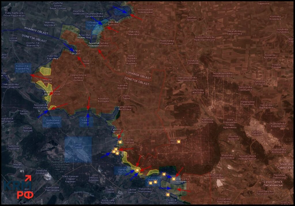 Под Красным Лиманом российские части вошли в западную и северную часть Заречного, а также в застройку Дерилово. Установлен контроль над северной частью Новосёловки.
