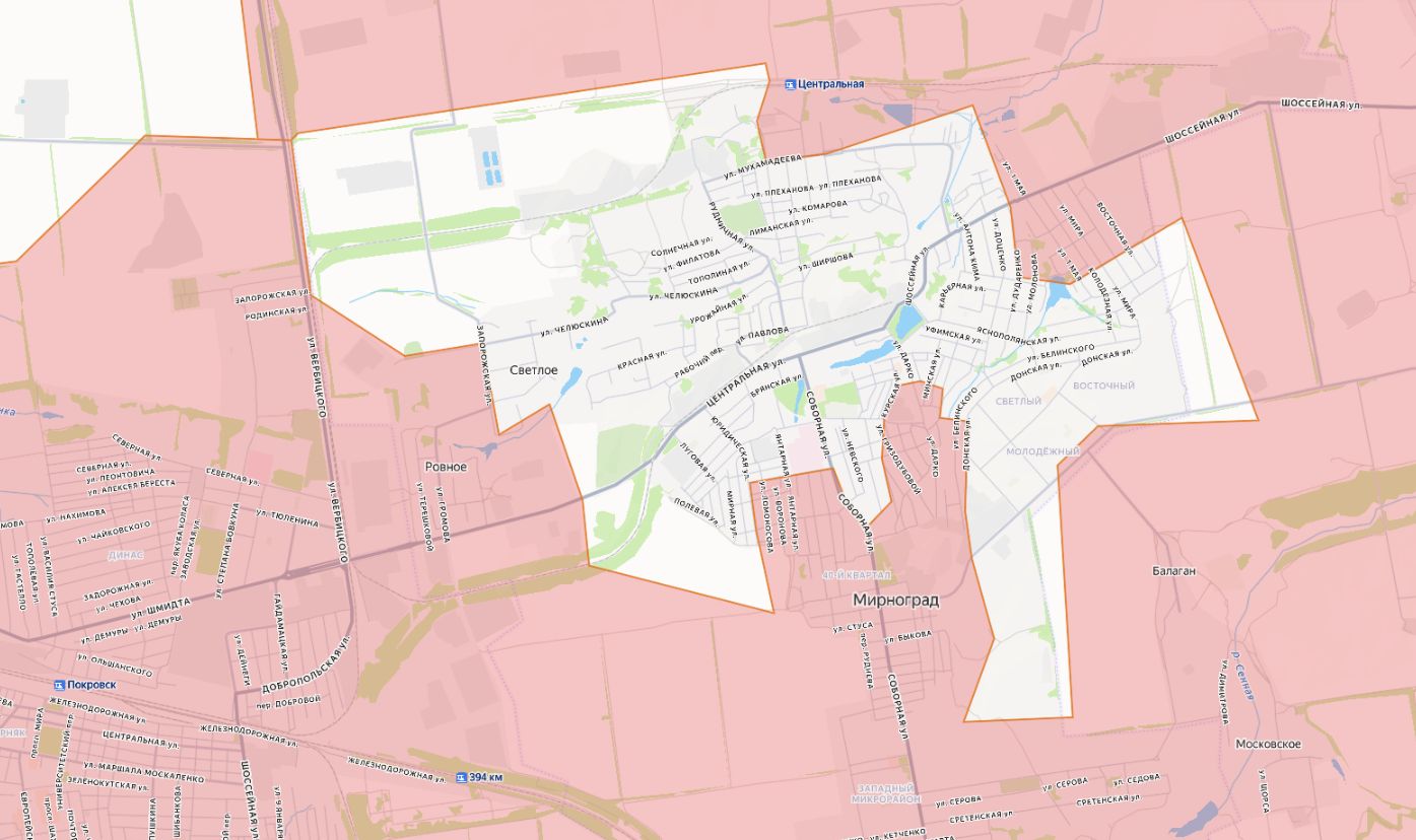 Российские подразделения установили контроль над большей частью населённого пункта Светлое, через который украинская сторона пыталась организовать деблокирование своего гарнизона на северо-западе Димитрова. В течение суток была завершена зачистка окружённых подразделений ВСУ западнее микрорайонов Молодёжный и Светлый в Димитрове.