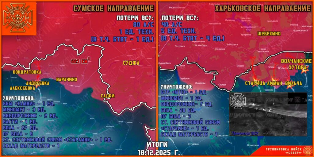 Подразделения группировки войск «Север» поразили формирования двух тяжёлых и шести механизированных бригад, а также подразделения теробороны и нацгвардии. Потери противника превысили 1425 военнослужащих.