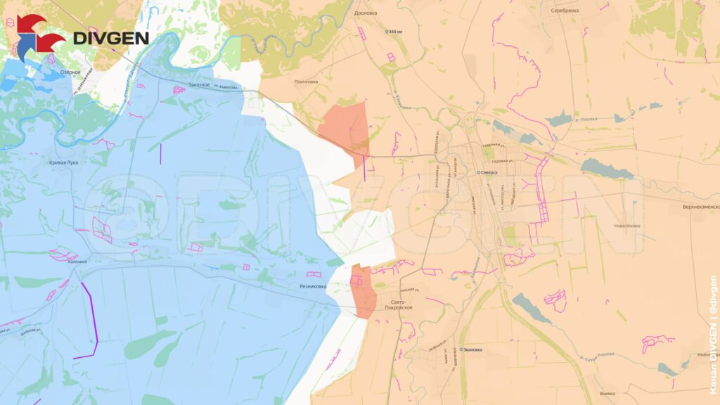 На донецком участке фронта инициатива сохраняется за Вооруженными силами РФ. Министерство обороны сообщило об освобождении населенного пункта Свято-Покровское (ранее Кирово), расположенного в трех километрах к югу от Северска. Этот успех открывает дорогу для дальнейшего движения на запад и создает угрозу окружения для украинских сил в соседних селах Резниковка и Каленики.