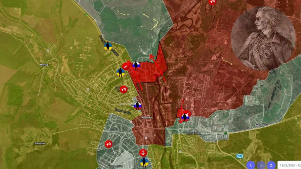 В Купянске ситуация по-прежнему тяжёлая. ВС РФ сохраняют частичный контроль над городом, тогда как ВСУ пытаются расширить присутствие в застройке, неся серьёзные потери от ударов авиации и артиллерии на западных подступах. Командующий группировкой «Запад» генерал-полковник Сергей Кузовлев во время доклада президенту заявил, что «на Купянском направлении ликвидация формирований ВСУ, которые окружены восточнее Купянска, проводится в соответствии с утвержденным Генеральным штабом замыслом», а «оставшееся блокирование части группировки противника планируем завершить в январе-феврале».