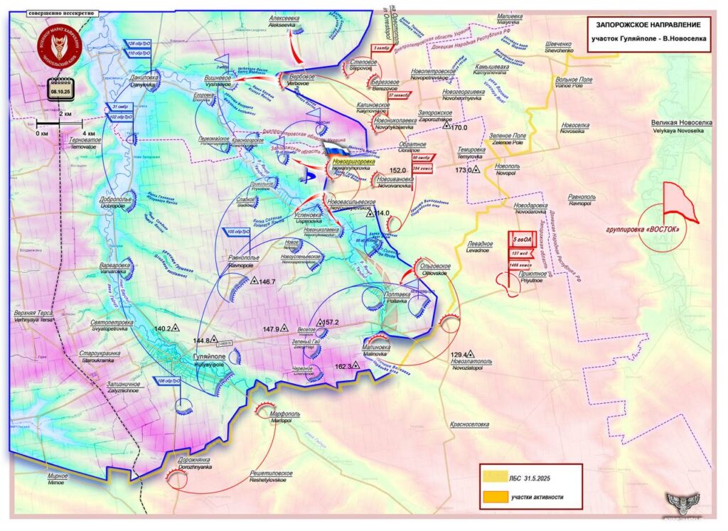 ВС РФ освободили несколько населённых пунктов — Новогригоровку, Нововасилевское и Охотничье, а также заняли часть Полтавки и Алексеевки. Наступление ведётся в сторону трассы Покровское — Гуляйполе, которая имеет стратегическое значение для снабжения украинской группировки.