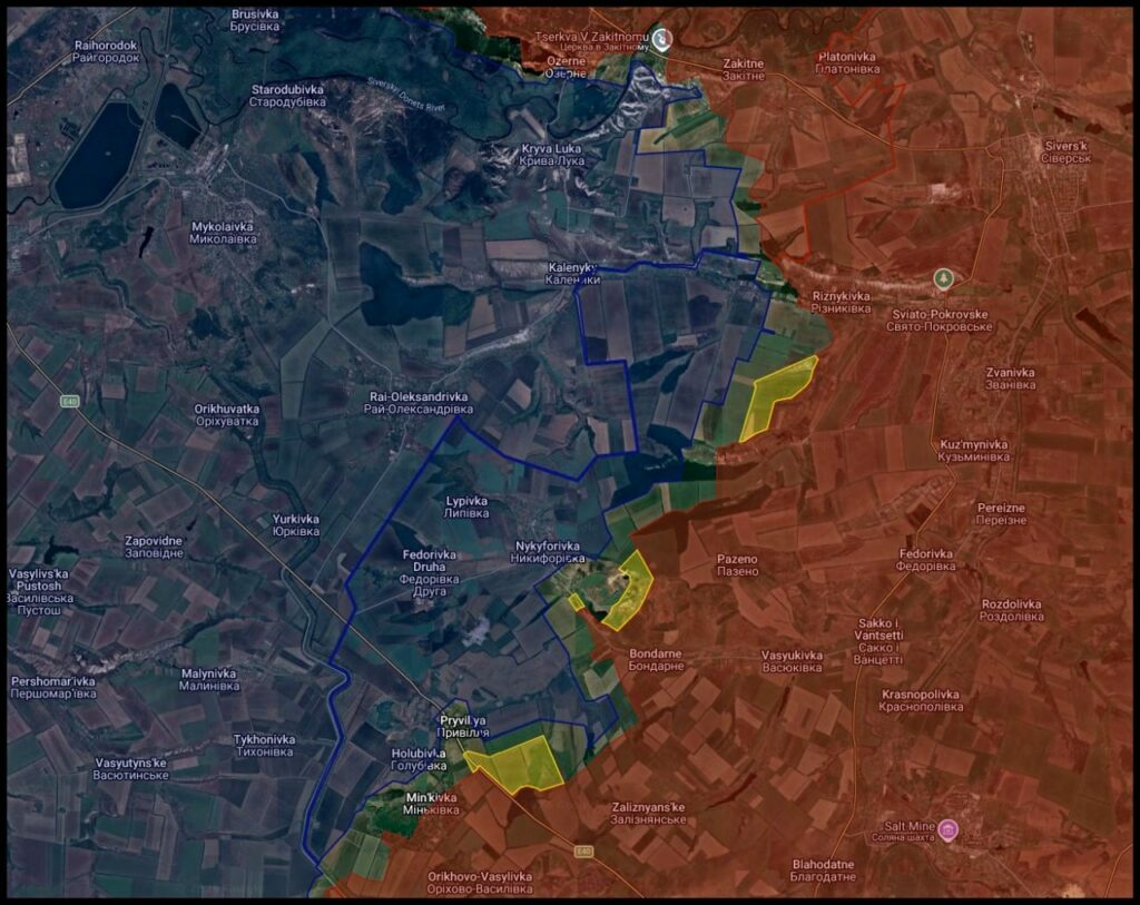На Северском направлении расширена зона контроля в районе Приволья, продолжаются бои у Бондарного и Хромовки. ВС РФ штурмуют Никифоровку и развивают успех в Резниковке. Ожесточённые встречные бои идут у юго-западной окраины Закотного, куда противник контратакует с высот в районе Кривой Луки.