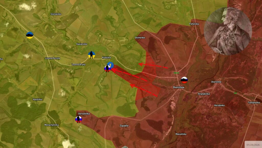 На Купянском направлении армия России развивает успех восточнее реки Оскол: идут бои в Верхнем Песчаном, закрепление на северо-восточной окраине Куриловки и продвижение в Петропавловке. В район Купянска-Узлового ВСУ, по сообщениям, перебрасывают пехоту по замёрзшему Осколу. На севере участка возобновились бои за Кутьковку.