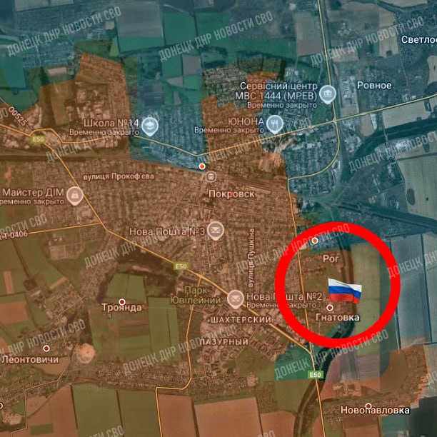 В самом Покровске продолжаются бои в юго-восточной части города и в частном секторе севернее улицы Железнодорожной. Бои также идут в Димитрове (ныне Мирноград), где российские силы действуют на юге и востоке.