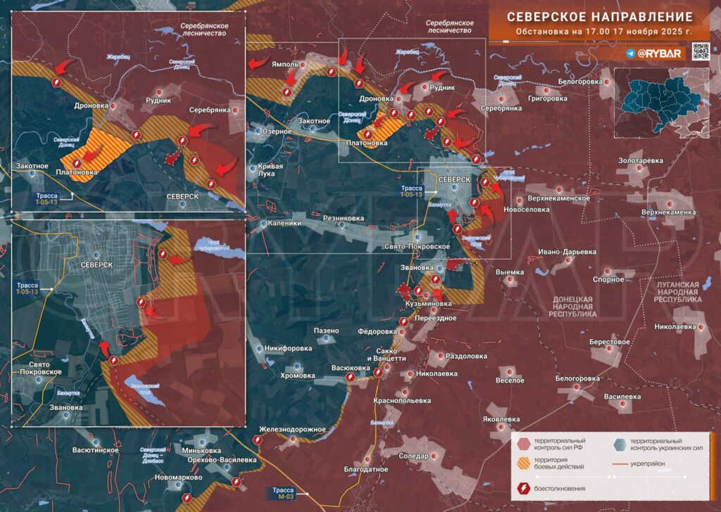 По словам источника, «с закреплением в Платоновке российским операторам дронов будет проще поражать пути снабжения украинских формирований через Резниковку». Российские подразделения «вышли к окраинам Серебрянки, Новоселовки и Выемки», приближаясь непосредственно к Северску. В районе Звановки продолжаются тяжелые бои.