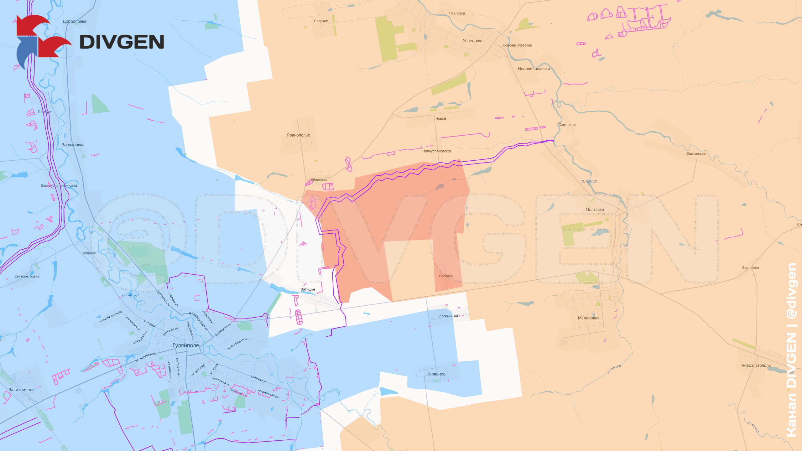 Гуляйпольское направление: Большая часть села Затишье, расположенного менее чем в двух километрах от Гуляйполя, перешла под контроль российских подразделений. Севернее, вдоль дороги на Покровское, штурмовые группы вошли в Радостное и вышли к окраинам Нового Запорожья. На участке фронта в Новопавловке российские военные фактически взяли под огневой контроль путь на Межевую и продвинулись в значительной части населённого пункта.