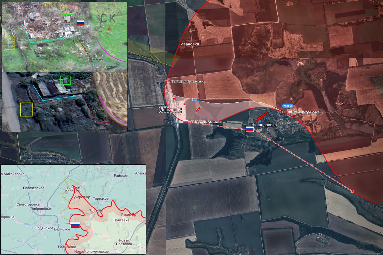 Доброполье — Никаноровка. Подразделения РФ продвинулись в Никаноровке на 900 метров, закрепившись в западной части населённого пункта. Зафиксированы обстрелы со стороны ВСУ.