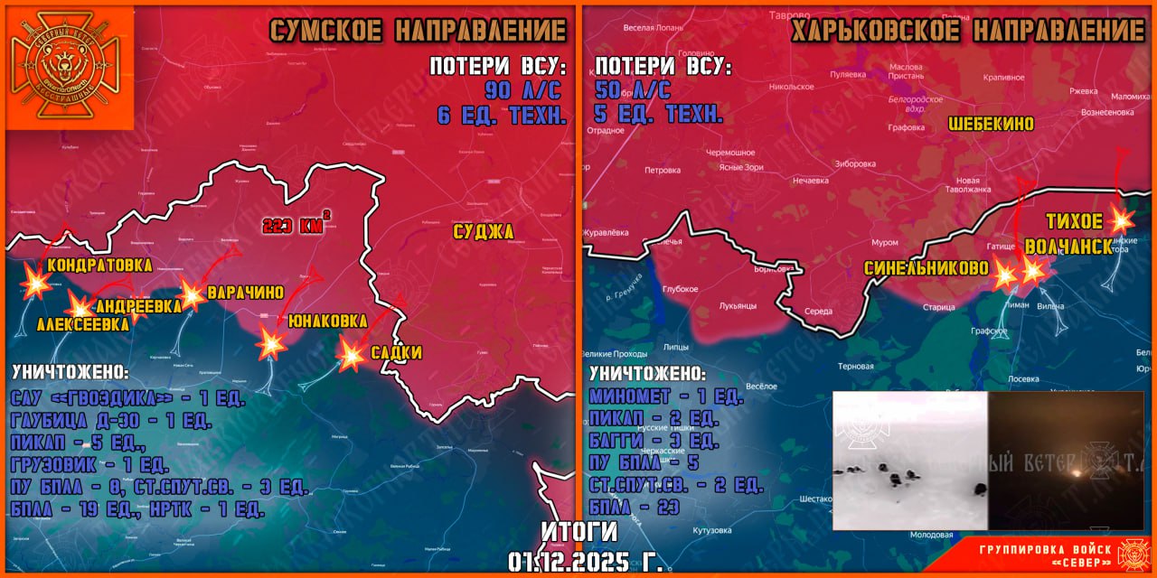 Фронтовая сводка на утро 4 декабря: ВС РФ выбивают ВСУ из Родинского и заходят в Гришино