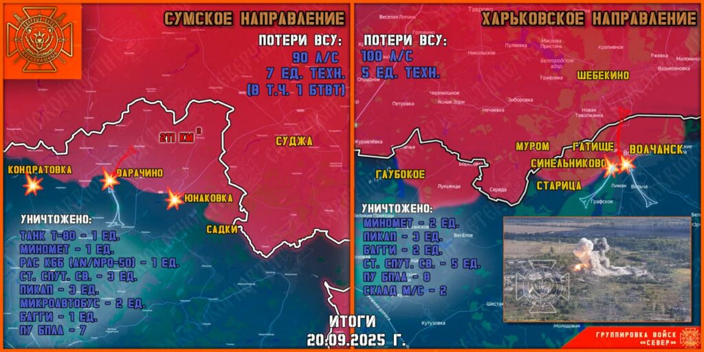 На Сумском направлении противник предпринял ряд контратак, но потерял значительное количество бронетехники. Несмотря на ожесточённые столкновения, линия фронта здесь остаётся без серьёзных изменений.