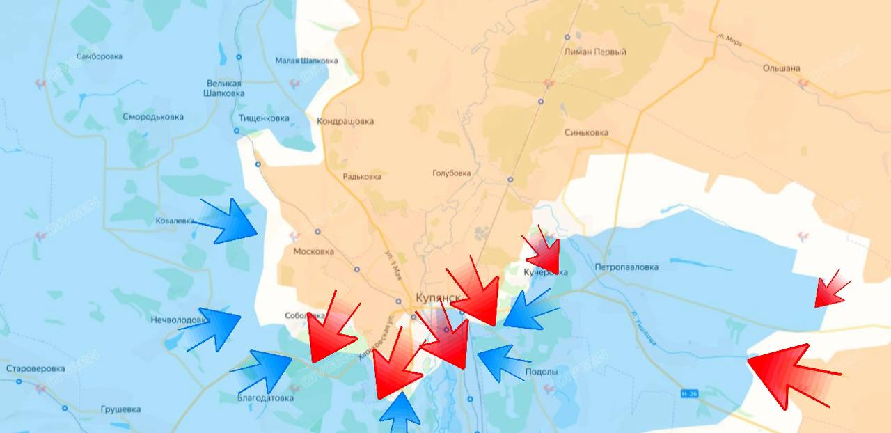 Российские войска продолжают закрепляться в северо-восточной и южной частях Купянска, формируя плотный клин вдоль шоссе и в жилых микрорайонах. Освобождая промышленную зону и железнодорожный вокзал усиливаем контроль над логистикой и внутренними коммуникациями города. Украинские контратаки в серой зоне и восточных кварталах замедляют продвижение российских подразделений, но не приводят к изменению контроля над городом.