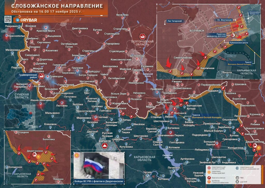 Российские войска развивают наступление на нескольких ключевых направлениях: освобождено Двуречанское, идут бои в Волчанске и Купянске, формируется давление на Гуляйполе