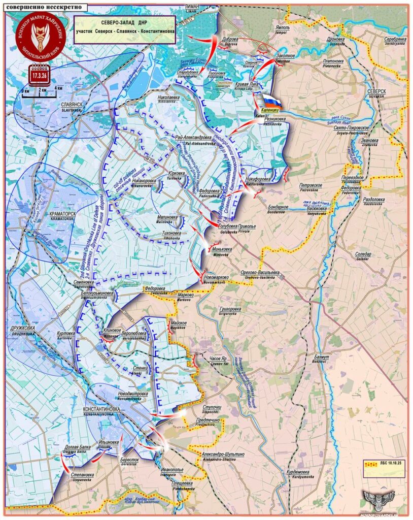 В северо-западной части Константиновки авиация и артиллерия ВС РФ бьют по многоквартирным домом, где ВСУ размещают вооружение и позиции, также противник задействовал для военных нужд практически все социальные объекты. Со стороны Берестка наши войска продвигаются к западной части города, бои идут за лесопосадки и дорогу от села в город.