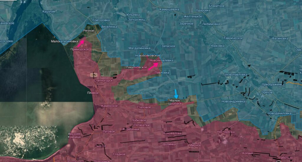 Никаких контрнаступов хохла здесь нет, идёт вязкая позиционка. Неделю назад ВСУшники (половина колумбийцы), пытались зайти в Малые Щербаки. В результате боя противник был частично уничтожен, частично отступил.