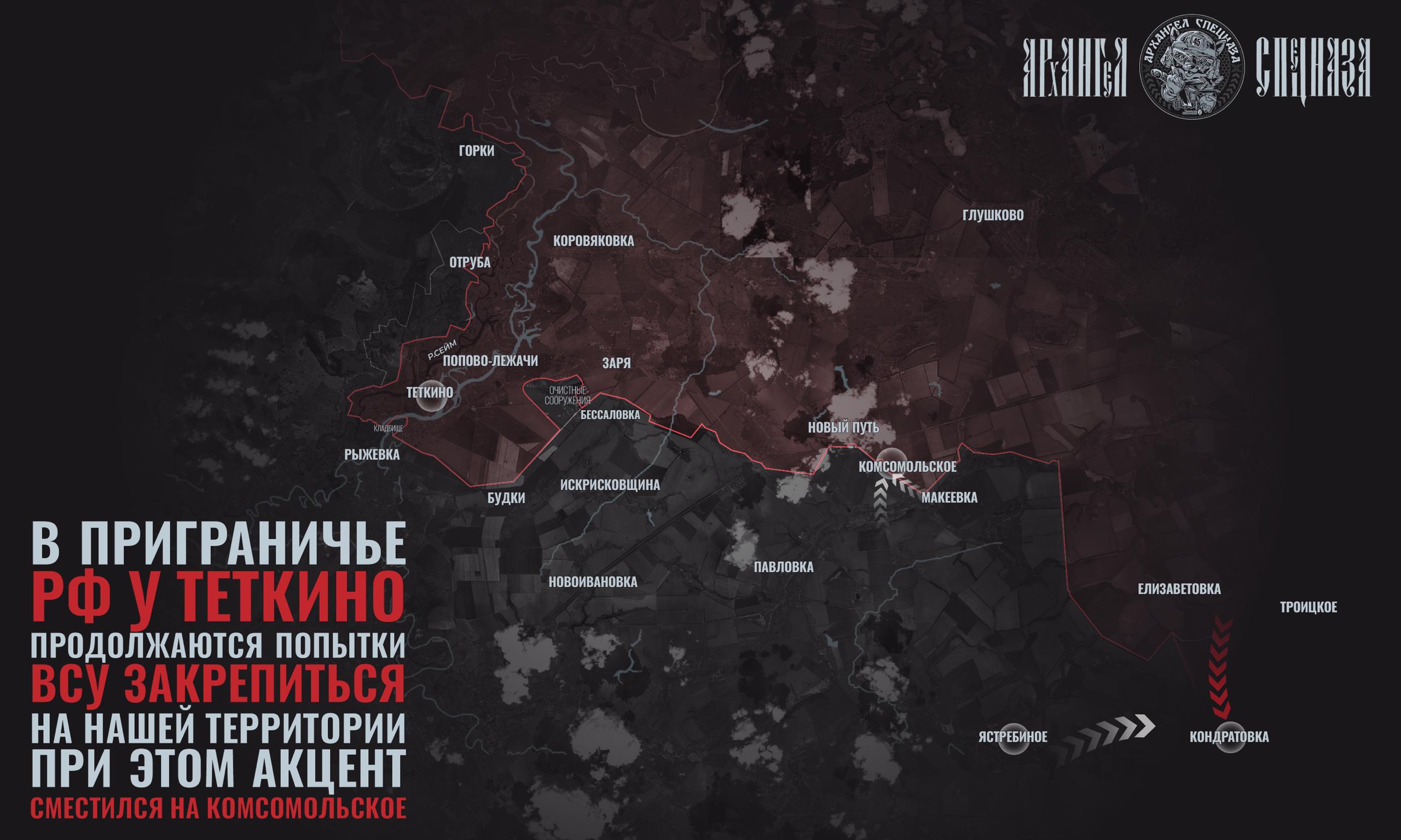 Утверждая, что этому будет способствовать переход ВСУ на систему армейских корпусов. При этом Сырский признал, что в армии не хватает резервов. Несмотря на это, украинский Генштаб продолжает тиражировать ложные отчёты о стабилизации ситуации на Сумском направлении, заявляя, что наступление российских войск полностью остановлено по линии Кондратьевка – Юнаковка.