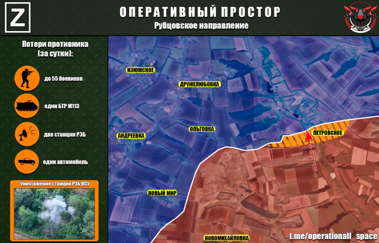 Петровское — село в Двуречанском районе Харьковской области с населением около 20 человек. Расположено в 15 километрах к востоку от реки Оскол и в 23 километрах к северо-востоку от Купянска. Освобождение Петровского позволяет группировке «Запад» расширить зону контроля на этом участке для оказания дальнейшего давления на левобережный Купянск. Одновременно на город давят с запада, со стороны Московки, освобожденной на этой неделе. Купянск является важнейшим транспортным и логистическим узлом ВСУ. Его потеря очень больно ударит по их возможностям перебрасывать войска.