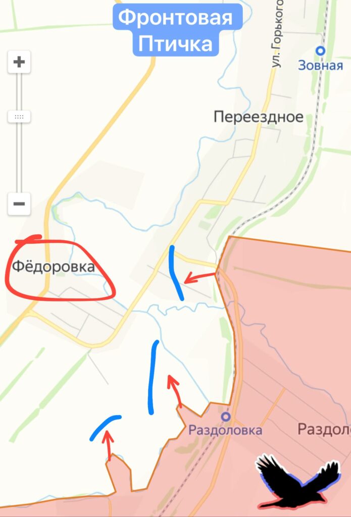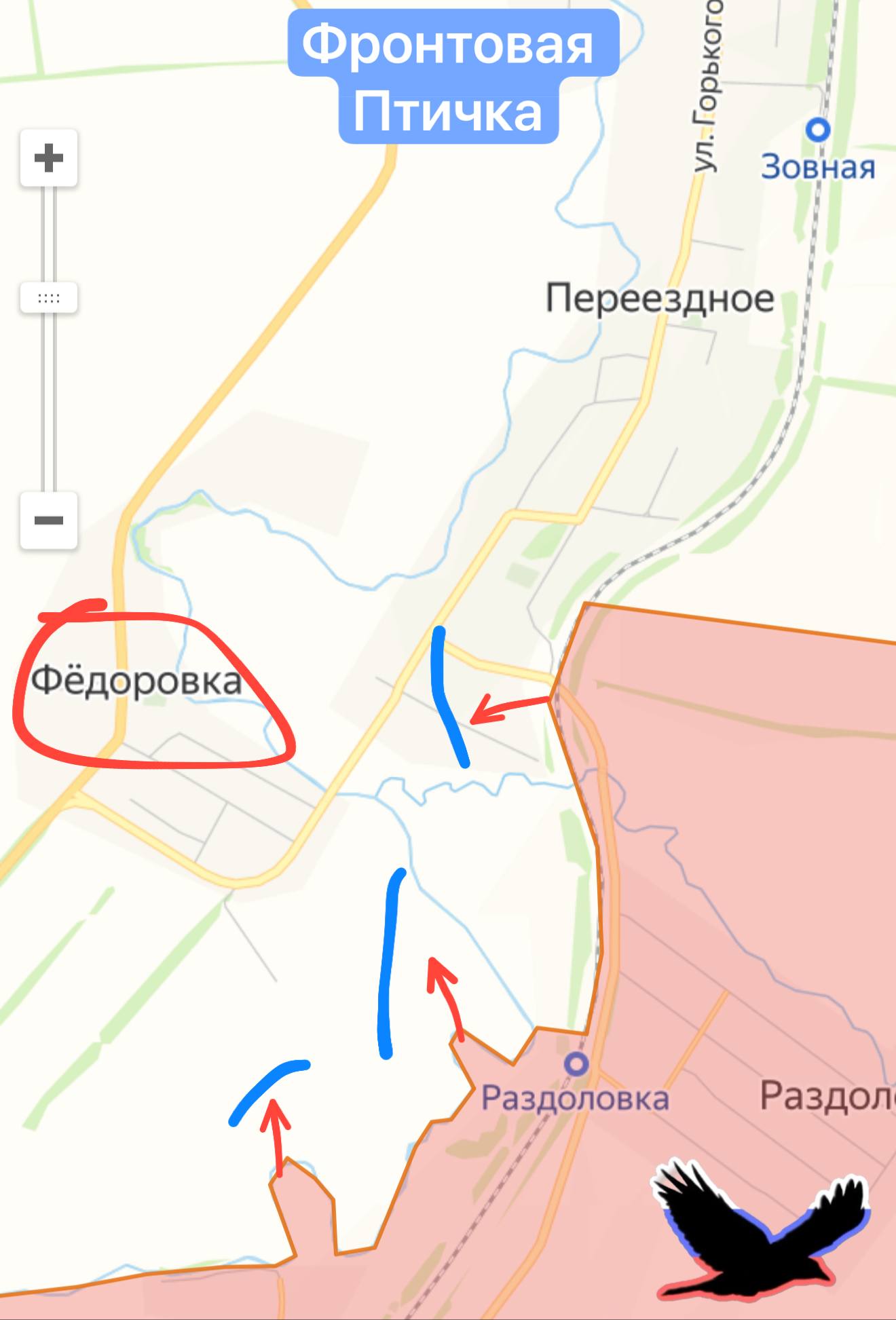 Наши мотострелки продолжают движение по направлению к Федоровке. За сутки продвижение составило порядка 1 км. Идут позиционные бои. В районе Федоровки уничтожен пункт управления БПЛА всу.