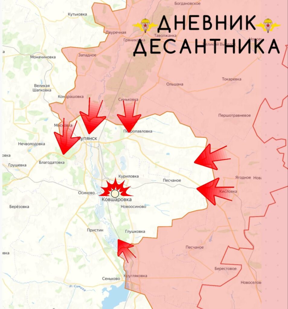 ВС РФ пытаются зайти и закрепиться в самом городе Купянск с северной стороны, а также расширяют плацдарм на западном берегу реки Оскол.