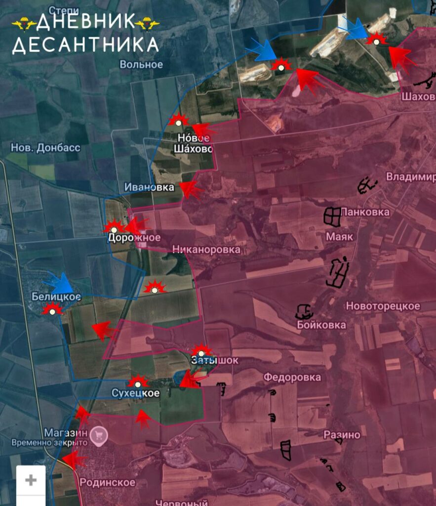 Большая часть Сухецкого находится в серой зоне. На северной окраине выступа у Октябрьского (Шахово) без особых изменений по линии фронта, — Дневник Десантника.