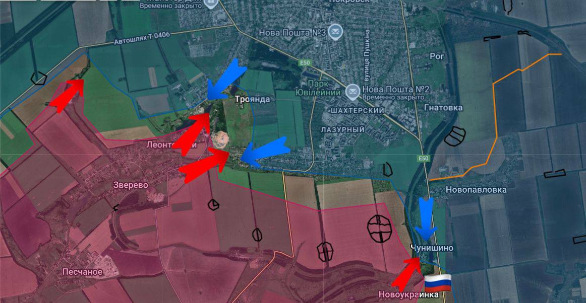 В Троянде, находящемся в пределах Покровска (Красноармейска), продолжаются интенсивные обстрелы оборонительных позиций противника. Эта активность указывает на желание российских сил создавать дополнительные угрозы для тылов украинских войск, параллельно ослабляя их устойчивость и снижая возможность организованных контратак.
