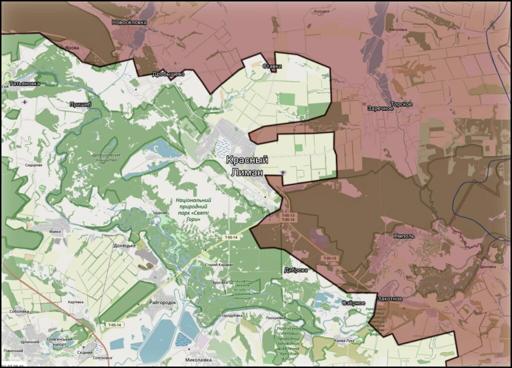 Основная тактика — артиллерийские удары, применение FPV-дронов и продвижение малыми штурмовыми группами. Тяжелые бои идут в районах Дибровы, Дробышево, Яровой, а также в лесах вокруг Красного Лимана. Часть этих территорий фактически стала «серой зоной», где позиции регулярно переходят из рук в руки.