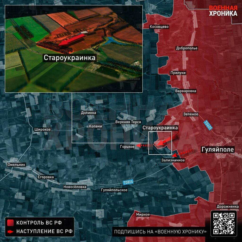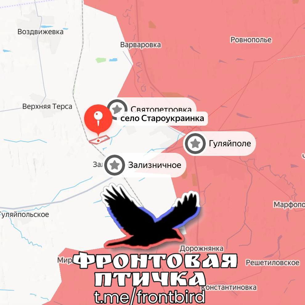 Гуляйпольский участок фронта: Подразделения ВС РФ освободили населённый пункт Староукраинка. После его перехода под контроль российских сил оперативное напряжение смещается в сторону Зализничного. Давление на данном направлении ведётся не только с юга и востока, но и с северного фланга, что создаёт для противника угрозу растяжения обороны и осложняет удержание опорных рубежей.