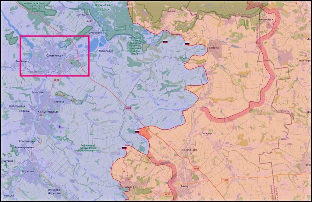 На южном фланге продолжаются бои у Никифоровки и Миньковки, данные об успехах противоречивы. В случае дальнейшего закрытия «карманов» и взятия высот логичным следующим направлением становится Рай-Александровка — преддверие основной линии обороны Славянской агломерации, — KRM РФ.