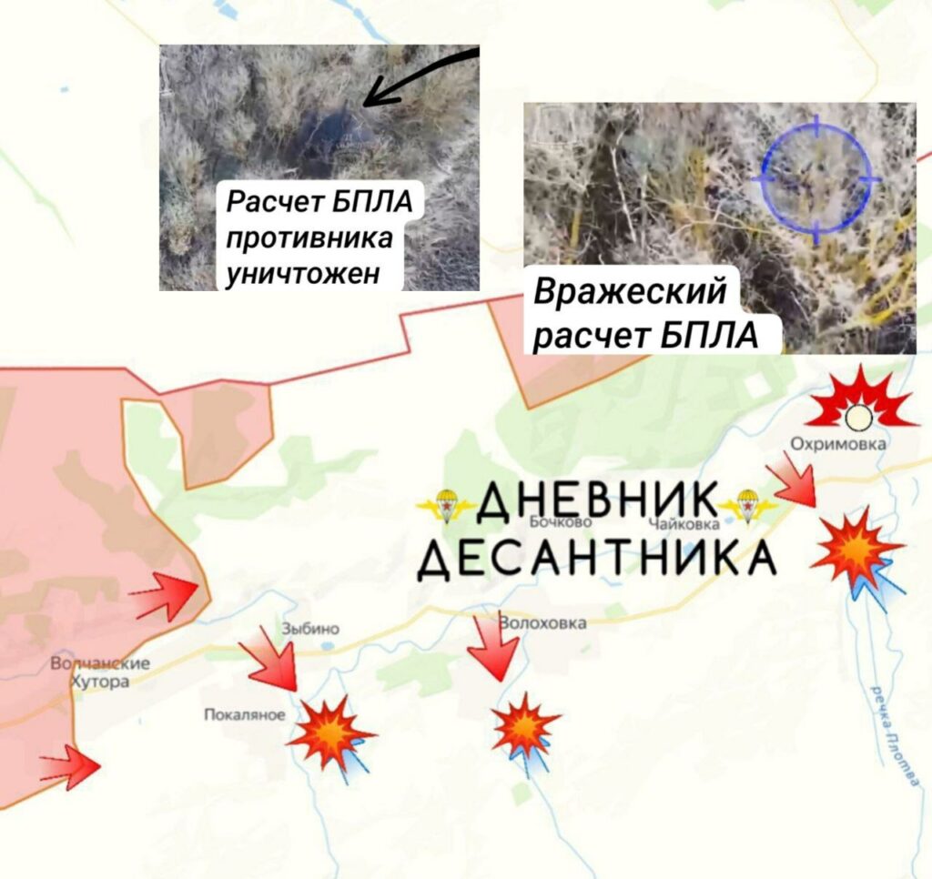 В районе населенного пункта Волчанские Хутора не стихают стрелковые бои. Есть продвижение вперёд. Рядом с государственной границей наши подразделения уничтожают противника в районе населенных пунктов Зыбино, Волоховка, Охримовка. Кроме того в окрестностях села Охримовка был обнаружен и уничтожен вражеский расчет БПЛА и усилитель сигнала.