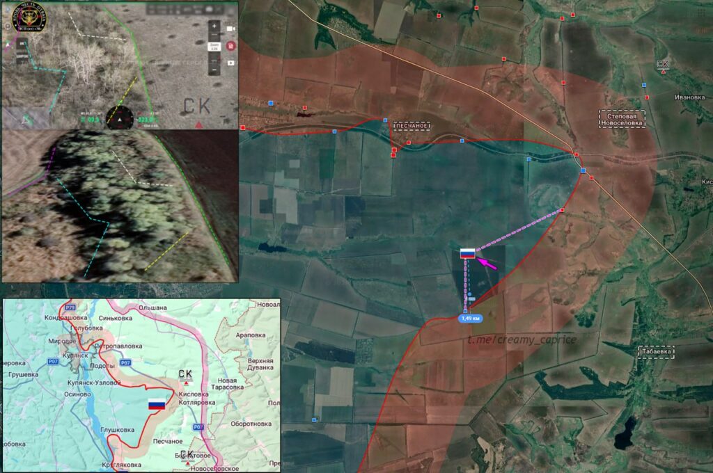 Активные боевые действия в районе Купянска. Атака ВС РФ пехотной группой южнее Песчаного. Штурмовики ВС РФ зачищают позицию ВСУ. Увеличение зоны контроля ВС РФ около 1,5км. Событие ориентировочно марта 2026, — Сливочный каприз.