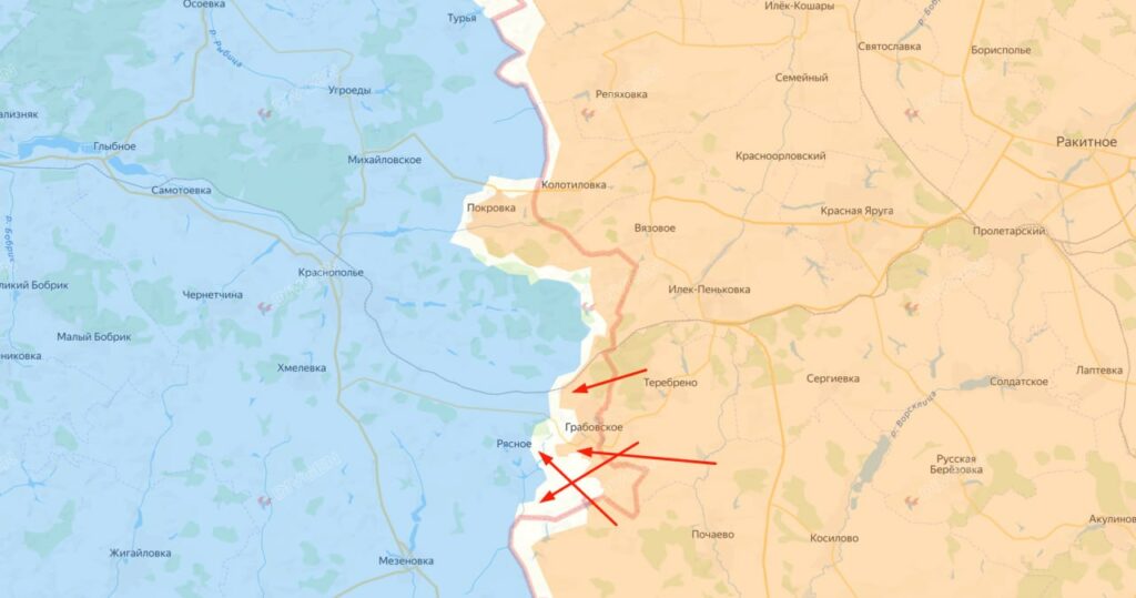 На Боровском направлении российские войска продолжают системные штурмовые операции вдов направлении реки Оскол. Основной акцент делается на локальное закрепление вдоль естественных и искусственных линий препятствий — лесных полос, линий деревьев и железнодорожных ограждений, что позволяет создавать плацдармы для проникновения в населённые пункты.