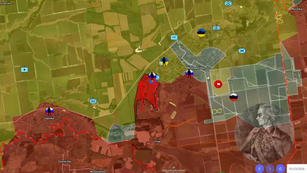 Параллельно фиксируются попытки давления с юго-восточного направления. Здесь силы РФ также прощупывают оборону противника, однако на данный момент без устойчивого закрепления и выхода на системное продвижение. Отдельно фиксируется активизация наступательных действий со стороны Филии, что может указывать на подготовку дополнительного вектора давления на Новопавловский узел обороны противника.