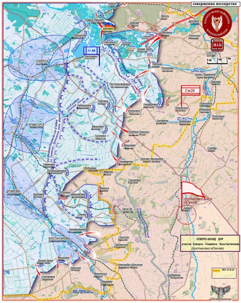 Разгром гарнизона ВСУ в Константиновке и штурм Дружковского направления. Карта боевых действий на Украине на вечер 28 марта 2026