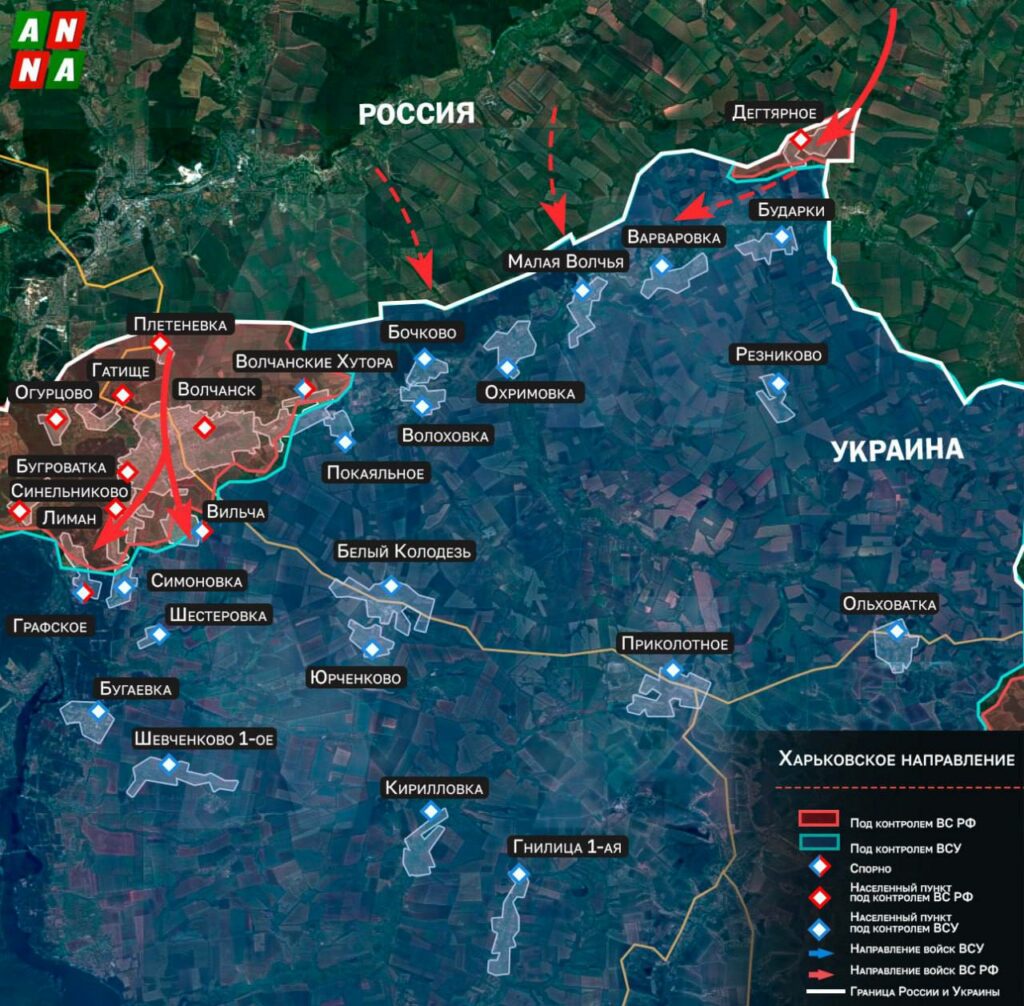Так, передовые российские военные подошли к восточной окраине и заняли часть Нестерного – это населённый пункт в 5 км от Дегтярного. В перспективе наступление ВС РФ здесь поможет зачистке левого берега реки Волчья и высвободит силы для развития наступления на юг от Волчанска Харьковской области, — ANNA NEWS.