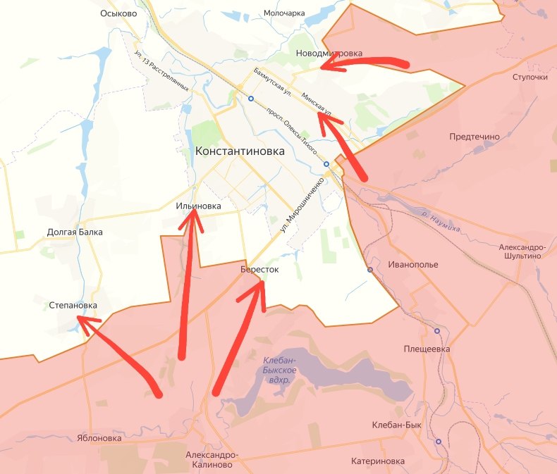 В ходе создания укрепрайонов ВСУ предполагали, что при попытке прорыва на левом фланге армия России сначала пойдет на штурм Степановки, а только затем на Ильиновку. Вышло все наоборот. Либо из-за переоценки своих возможностей, либо недооценки наших, украинцы не ожидали одновременного удара. В результате, ВСУ оказались связаны в боях за Степановку, в то время как ВС РФ со стороны съезда на Александро-Калиново прорываются к западной окраине Константиновки, — Шепот Фронта.