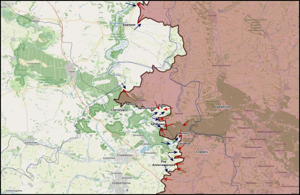 Враг атакует из Лимана на направлениях Зелёный Клин — Ставки, в Масляковке и вдоль трассы на Заречное. Ситуация в окрестностях Святогорска и Александровке требует уточнения, — СЕНАТОР.
