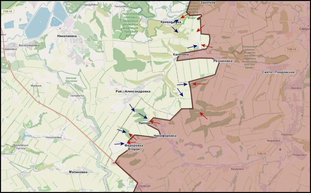 Идут бои на линии Кривая Лука — Каленики — Рай-Александровка — Липовка. Основная борьба за лесополосы, балки и высоты.