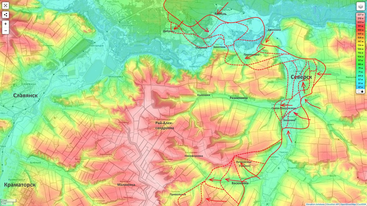 Теперь ВСУ пытаются закрепиться в районе мелового карьера — последнего крупного укрепленного пункта перед открытыми полями у Платоновки и Резниковки. Если российские войска выйдут туда с востока, противник потеряет возможность сосредоточить силы на трассе Северск – Красный Лиман, что создаст существенный разрыв в обороне.