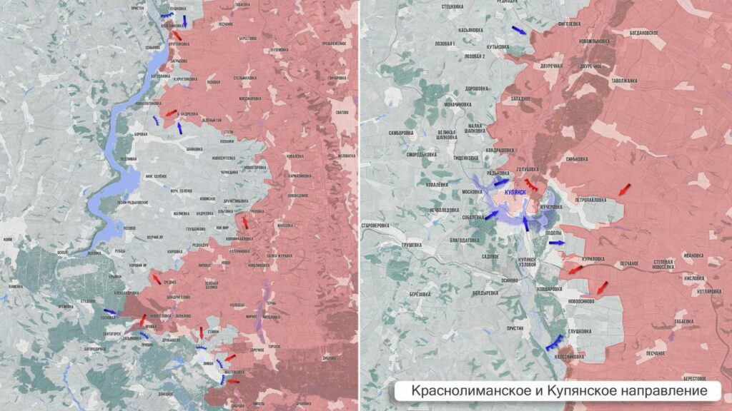 В самом Купянске ситуация также без существенных изменений, остаётся контролируемой. Противник атаковал пехотной группой в направлении Радьковки, успеха не имел. В целом, в течении последней недели противник несколько снизил активность в районе Купянска, сосредоточившись вероятно на логистике и накапливании пехоты на линии Благодатовка — Нечволодовка — Ковалевка, — Направленец по Украине.